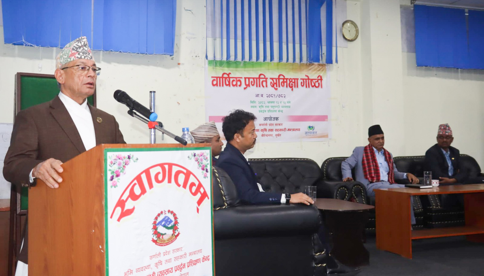 यस्तै, समीक्षा गोष्ठीमा बोल्दै कर्णाली प्रदेश योजना आयोगका उपाध्यक्ष सूर्यनाथ योगीले कर्णाली प्रदेशको भूमि व्यवस्था, कृषि तथा सहकारी मन्त्रालयले लक्ष्य अनुसारको प्रगति हासिल गरेको बताए।
